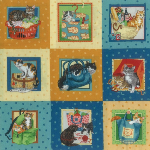 Knitting Cats Fabric Panel