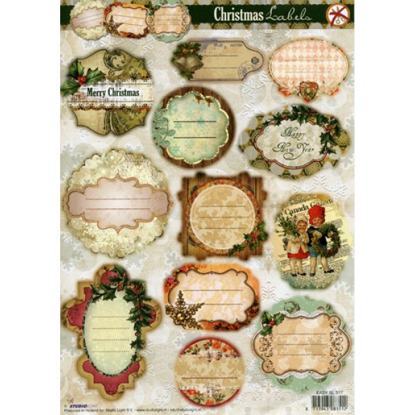 A4 sheet of traditional Christmas greeting tags. No cutting required - just push out to create stunning decoupage toppers for all types of craft projects.