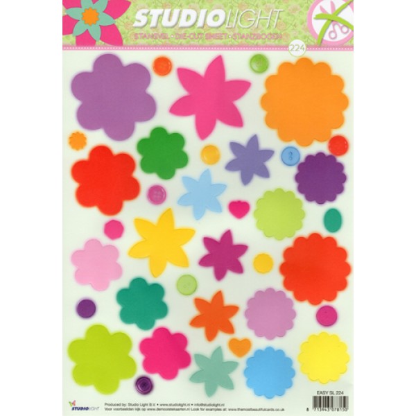A4 sheet contains over 20 die cut flower shapes in various colours.
