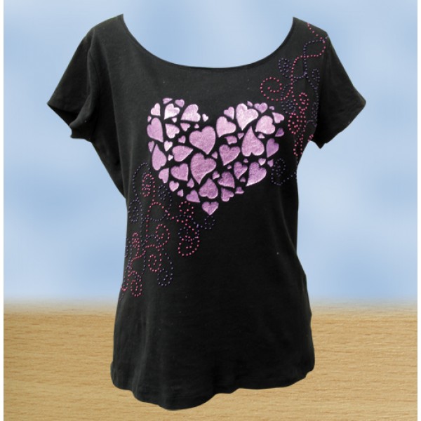 Contents: Rose Stencil x 1, Hearts/Flourishes Stencil x 1, Small Hearts Stencil x 2, Textile Paints x 3, Applcation Sponges x 2, Paint Brush x 1, Dabber x 1