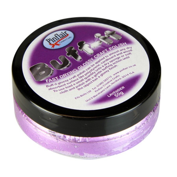 Buff-It glossy craft polish can be applied to almost any dry dust free absorbent surface like polystyrene, cardboard, paper and wood. It can be used like gilding wax to highlight areas of your work, but you can also use it to stencil, stamp and even paint with. If used in conjunction with Pinflair Gentle Blends paints it will resist the paint giving you endless options to create stunning creations.