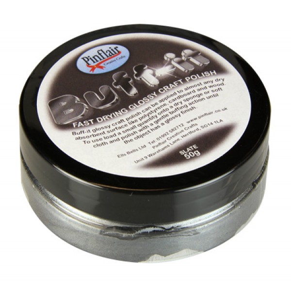 Buff-It glossy craft polish can be applied to almost any dry dust free absorbent surface like polystyrene, cardboard, paper and wood. It can be used like gilding wax to highlight areas of your work, but you can also use it to stencil, stamp and even paint with. If used in conjunction with Pinflair Gentle Blends paints it will resist the paint giving you endless options to create stunning creations.