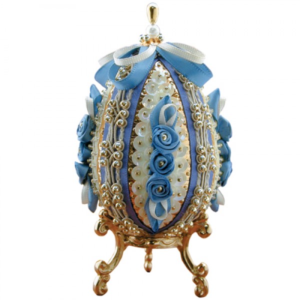 Roses, ribbon and braid gives this egg a mark of distinction.